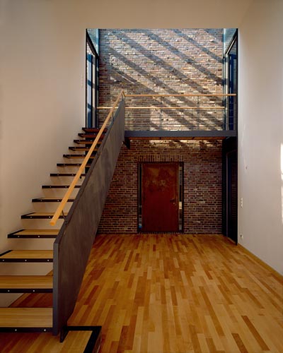 Weite. Eine filigrane Stahltreppe verbindet die Eingangshalle mit