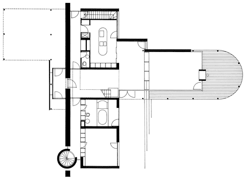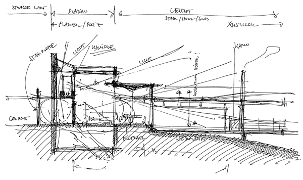 Terrasse. Außenräumlich erhält dieser Bauteil seine Fassung durch