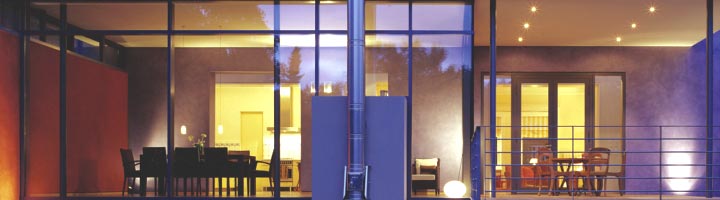 verglasten Gartenfront plazierten Kamin optisch verklammert wird.