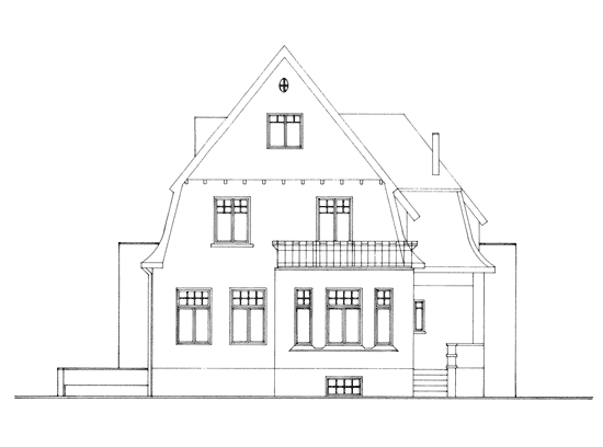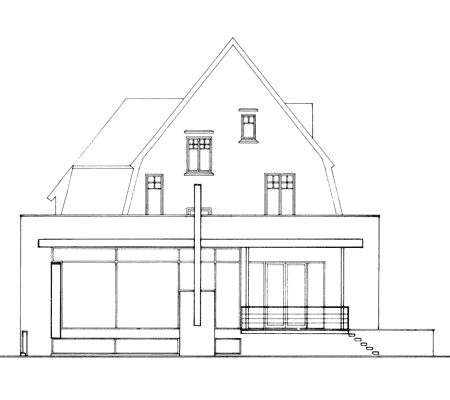 verknüpft. Der markante Hausgiebel wird durch den flachgedeckten Neubau
