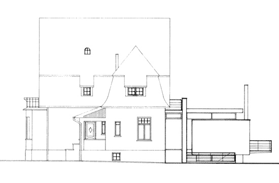 von 1911, wurde um einen neuen Wohnbereich ergänzt, der mit dem Altbau