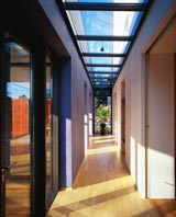 bewahren. Ein zwischen den Bauten verlaufender Flur fungiert als Fuge,