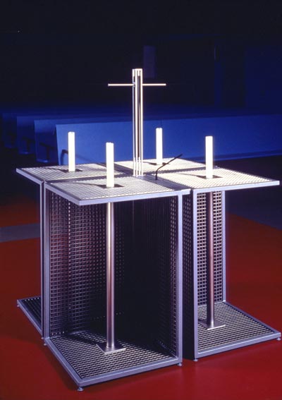– Altar, Taufe, Pult und Liedbuchwagen – einen eigenständigen Formenkanon