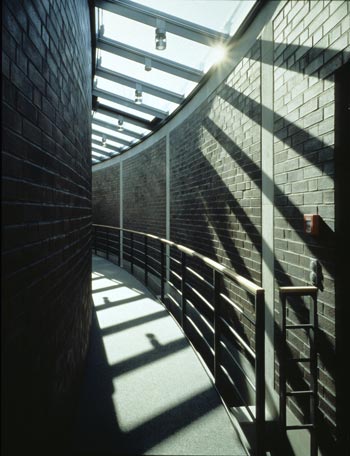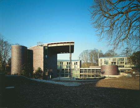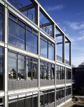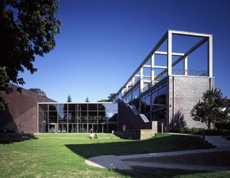 unterstützt. Die gedeckte Farbigkeit der Stahlbauteile harmoniert
