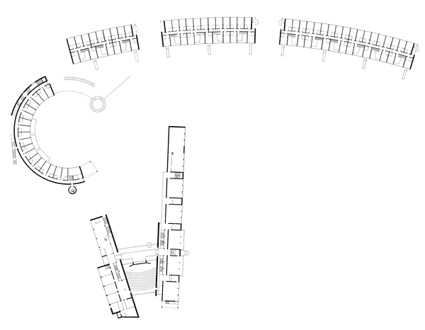 Die unterschiedlichen Bereiche sind in Einzelbauten angeordnet,