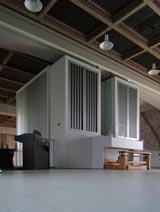 separaten Gehäusen, deren Zwischenraum dem Organisten Blickkontakt